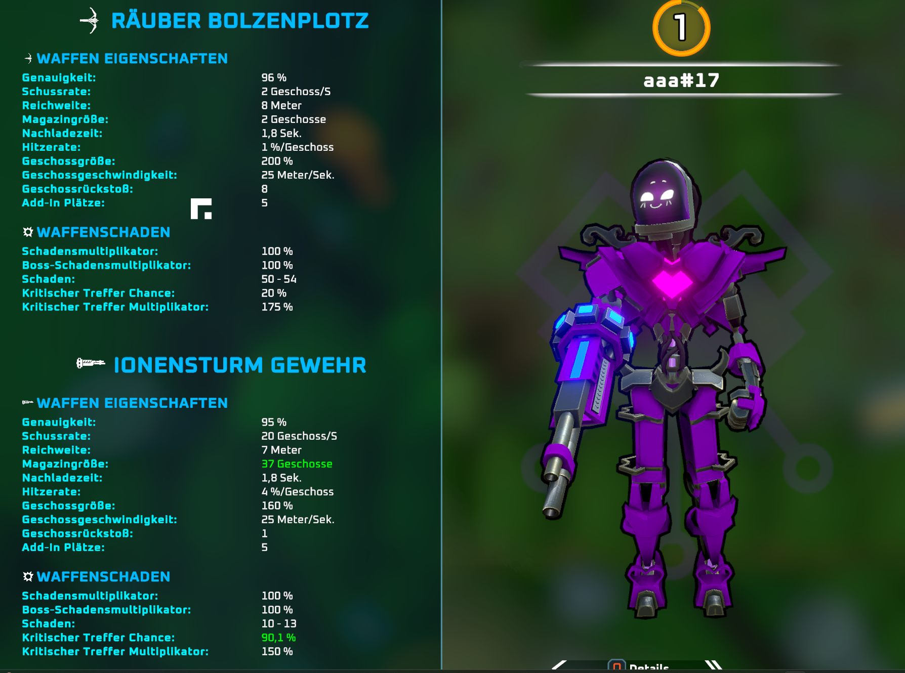 | Description | Critchance auf 90,1% (IONRifle, Zenit und Capacitator) | ||||